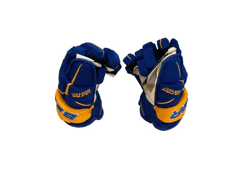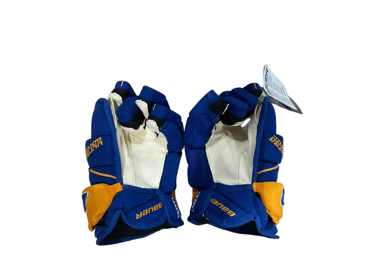 NCAA Lake Superior Bauer Supreme Ultrasonic Senior Pro Stock Gloves Blue and Gold